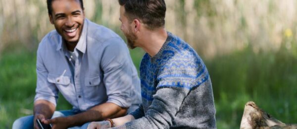 2 men sit across a table playing Jenga , a game where a tower of bricks is dissembled.